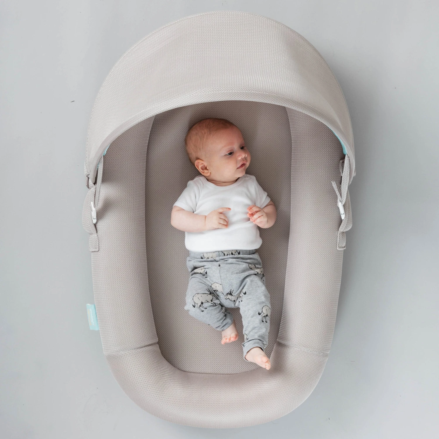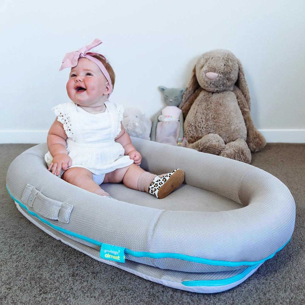 Using similar breathable, washable materials as the airnest mattress, the airnest pod is a portable, multi-use nest for baby to play, cuddle, or rest away from their cot.