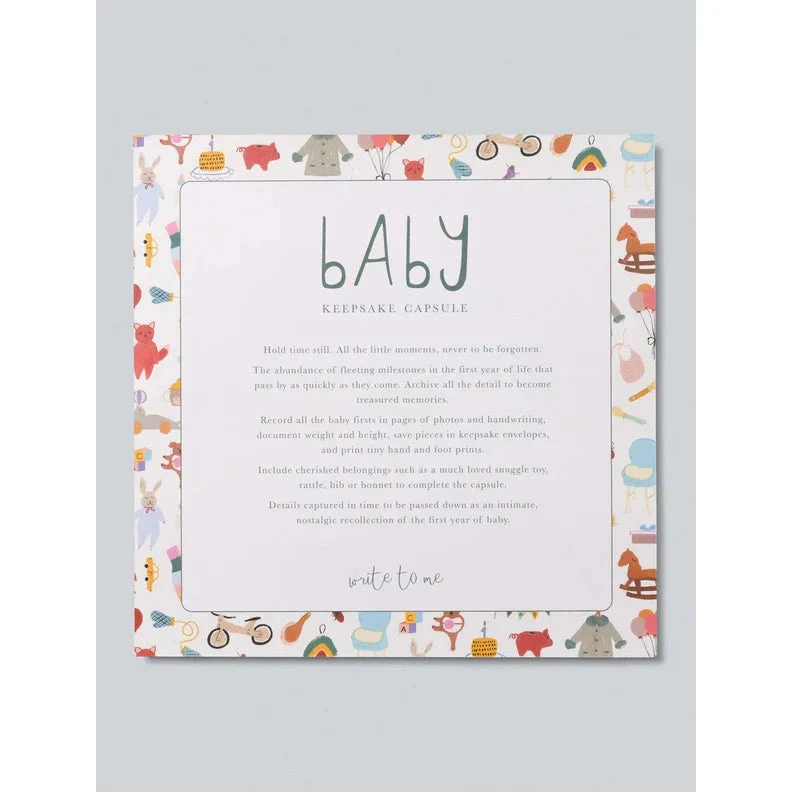 tand time still by collecting and documenting all the baby milestones and selected little treasures to create a capsule to pass down. A place where memories live and detail will never go forgotten, our Baby Keepsake Capsule makes a meaningful baby shower or newborn gift.