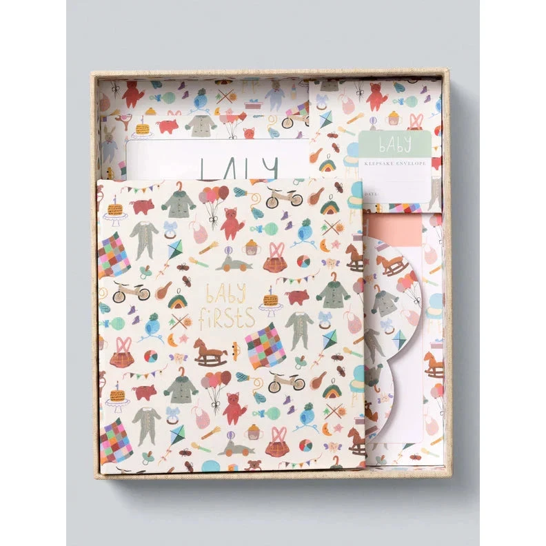 - Journal Baby Firsts Linen Bound Journal. Luxury linen hard cover journal, gold wiro bound with gold embossed title and spine.