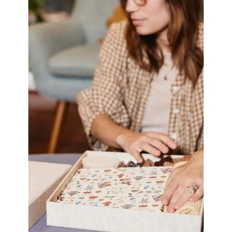 Create a Baby Keepsake Capsule with details captured in time to be passed down as an intimate, nostalgic recollection of the first year of baby. Record all the baby firsts in pages of photos and handwriting. Document weight and height, save pieces in keepsake envelopes and print tiny hand & foot prints. Include cherished belongings such as a much loved snuggle toy, rattle, bonnet or tiny outfit to complete the capsule.