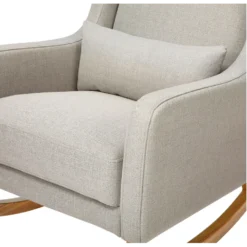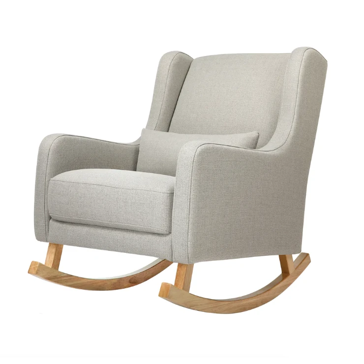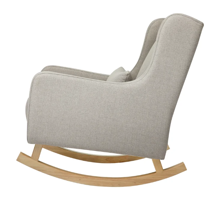 Modern Wingback Style:Â A modern twist on a mid-century wingback rocking chair with softly rounded edges and curved walnut-stained legs.Â