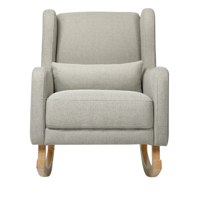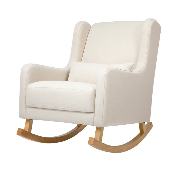 Designed with modern rounded edges, curved rubberwood legs, and included lumbar cushion for added comfort. It’s modern but also more sustainable choice for your nursery.