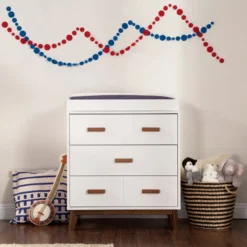 - MID-CENTURY MODERN STYLE: The Scoot 3-drawer dresser brings personality and practicality together with a hint of retro styling. Pair with your Scoot 3-in-1 cot for a complete nursery look.