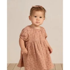 Our Bella Dress features an empire waist dress with balloon sleeves and stretchy neckline. It also includes matching baby bloomers.