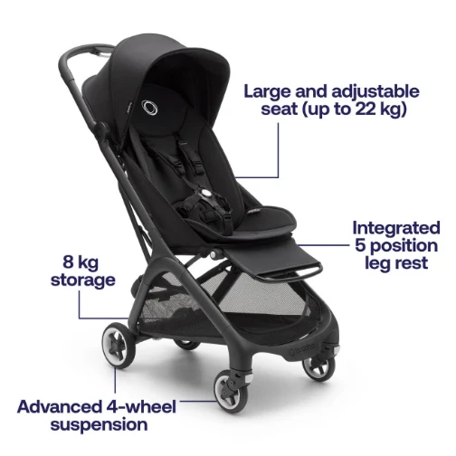Behold the ultra compact Bugaboo Butterfly, the one second fold pram for city and travel life. Fold and unfold the Butterfly at lightning speed and enjoy total freedom on your daily commute or weekend getaway. It’s lightweight, easy to manoeuvre, yet super sturdy for wherever adventure takes you and your growing baby.