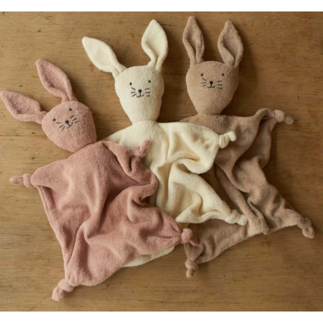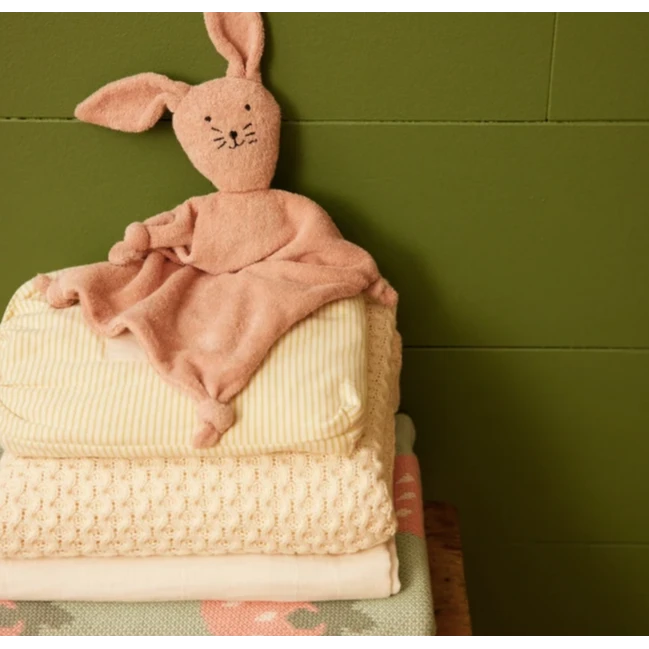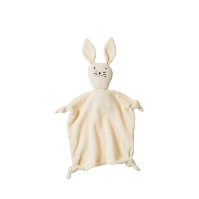 Meet Casey Cuddle Bunny, made from snuggly organic cotton terry and filled with organic cotton wadding. Our cuddle bunnies are designed to create comfort and calm, and can act as a sleep aid for little one. These cute new cuddle friends are perfect for young ones, knotted feet make it easy to grasp and are also great for chewing on when baby is teething. Features hand embroidered face detailing which makes each toy a little different and very special, and space for little one’s name on the tag so their cuddle bunny remains theirs for as long as they need.