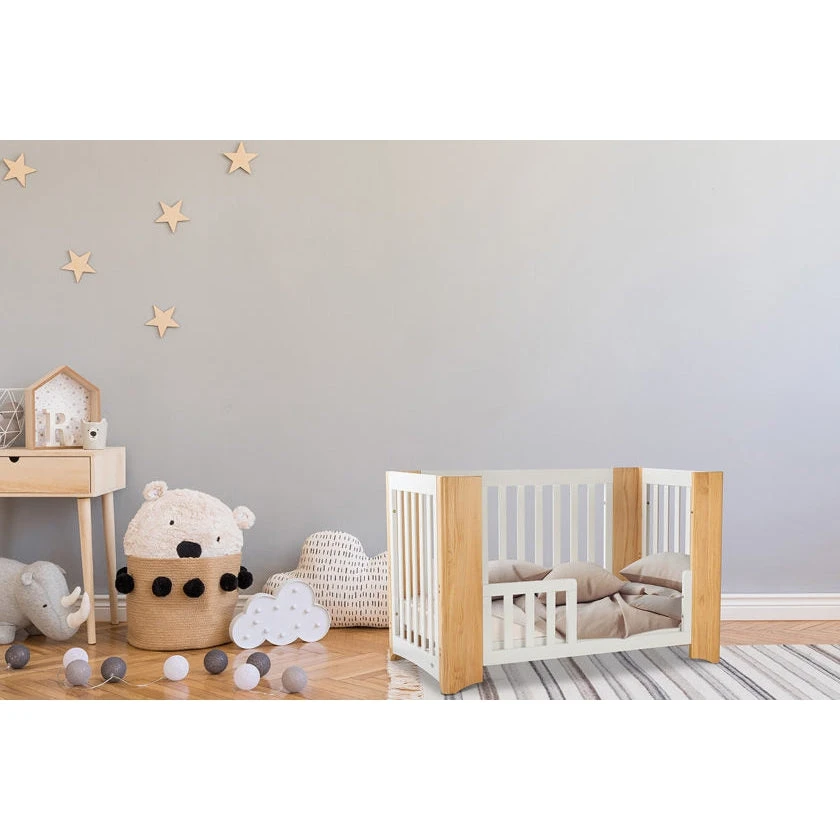 - 4 in 1: Bassinet, cot, toddler bed, sofa.