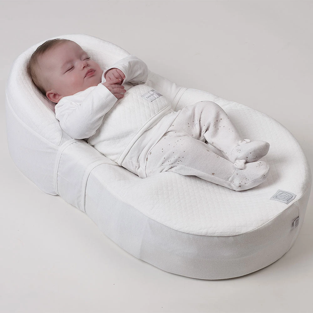 Respecting the medical recommendation to sleep babies on their back, the elongated semi-fetal position in the Cocoonababy® Nest allows babies to feel safe and content.