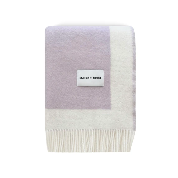 The Color Block Blanket No.1 Lilac is jacquard-woven from 100% New Zealand wool with fringes on the short sides. A thick premium blanket that is mirror-inverted on the opposite side. Measuring 130 x 200 cm, it’s big enough to let someone join you. It keeps you warm and upgrades your living room in a split second.