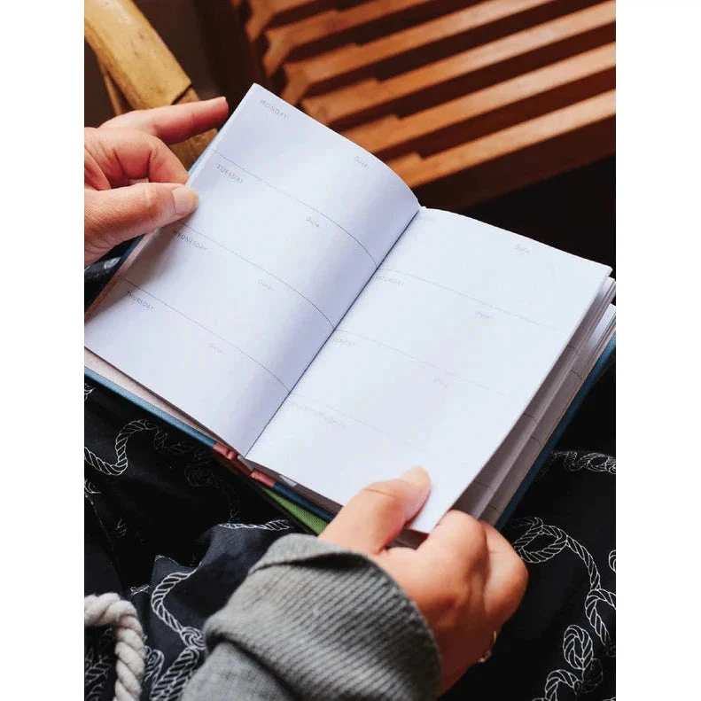 Daily Pocket Plans is a perpetual journaling and planner experience designed for convenience. Its compact size fits snugly into a handbag, so you can effortlessly jot down notes on the go, anytime, anywhere.