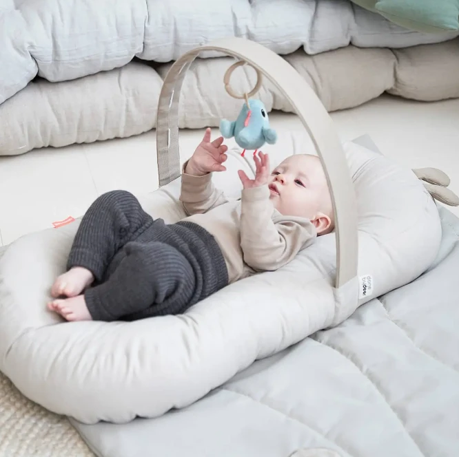 This gorgeous baby lounger is perfect for play time and tummy time. A soft nest that is portable, the lounger comes with a removeable activity arch for attaching your baby’s favourite toys.