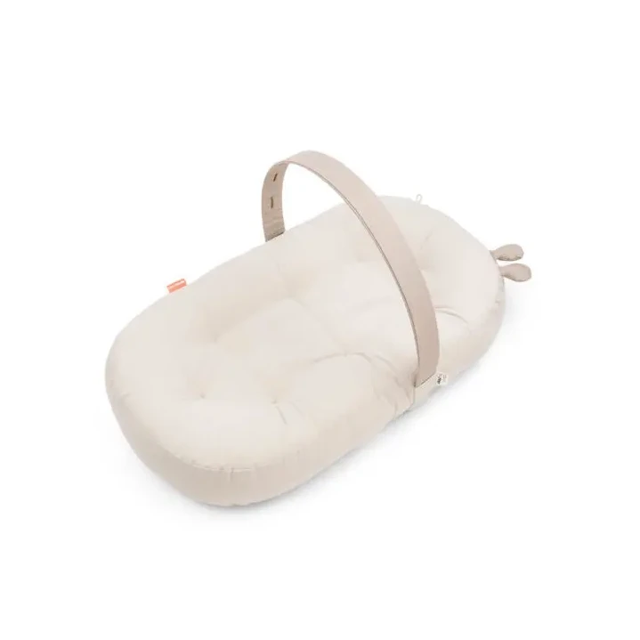 The Cozy lounger must always be placed on a flat surface and you cannot carry your baby in the lounger. The removable cover is washable at 30°C.