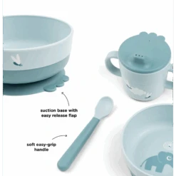 Little ones will enjoy any meal served in this cute Foodie first meal set with a playful motif. Its practical suction base keeps the bowl in place and the spoon has an easy-grip function making it comfortable to feed your baby.