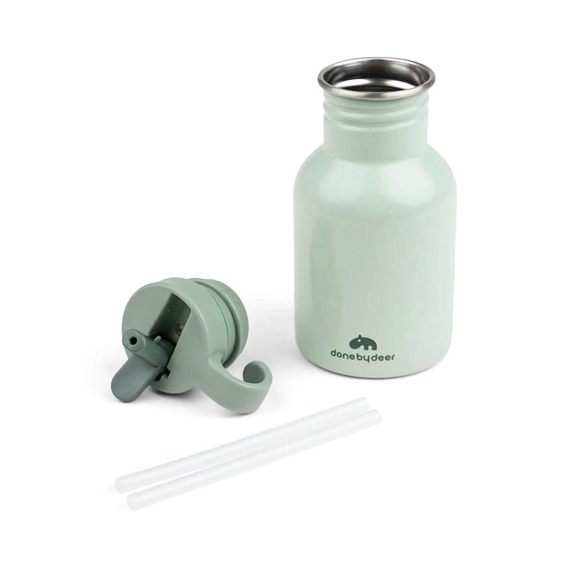 The Done by Deer metal drink bottle is sturdy and practicle with cute designs.