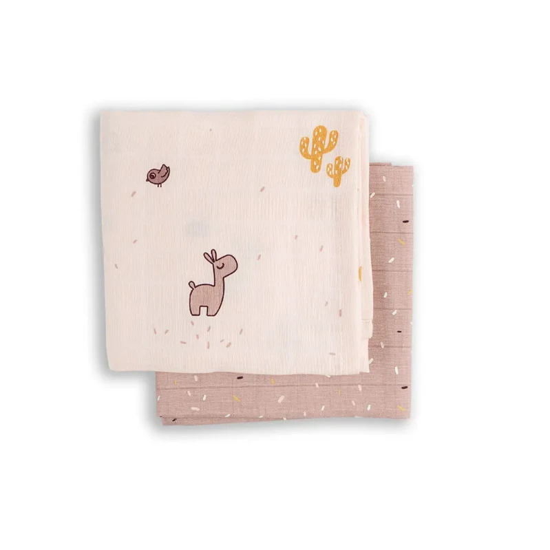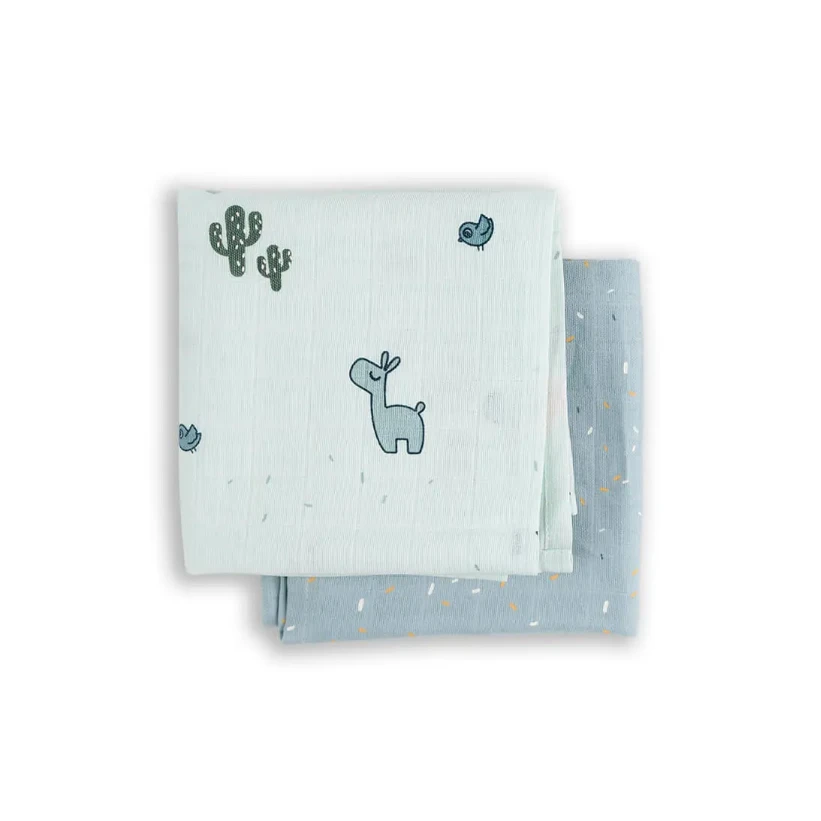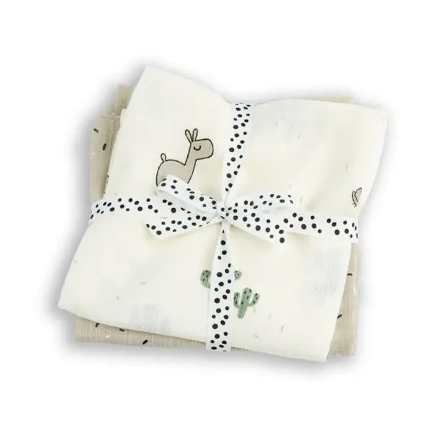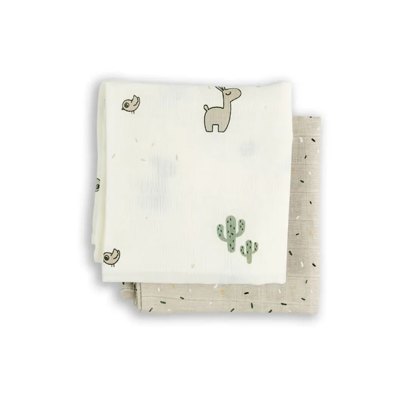 These swaddle packs come in a set of two, decorated with a cute Lalee the Llama, Birdee and Cactus design.
