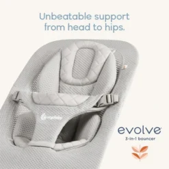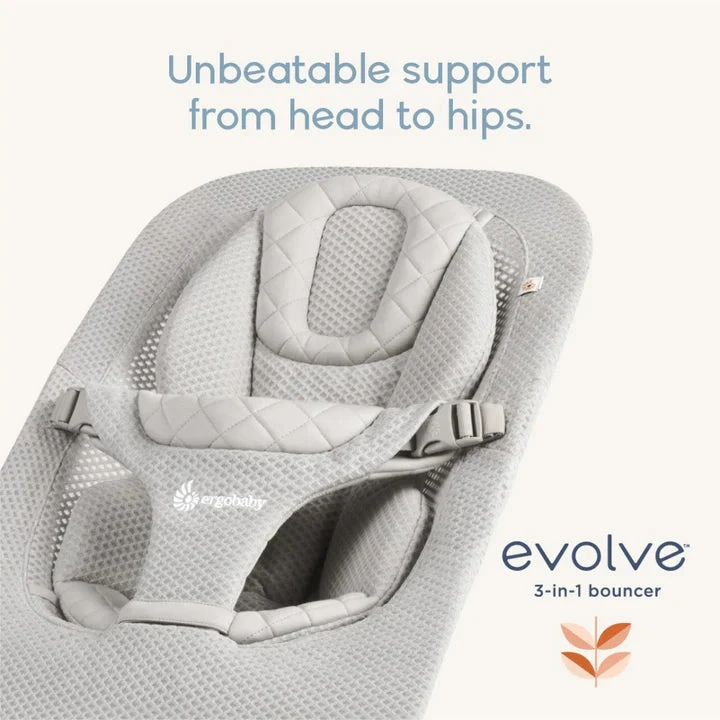 The Ergobaby Evolve Bouncer simplifies your life, so you can focus on what matters most. Evolving as your little one grows…from a cozy newborn lounger…to a relaxing infant bouncer…to a functional toddler chair…the Ergobaby Evolve 3-in-1 Bouncer supports families through every stage of growth.