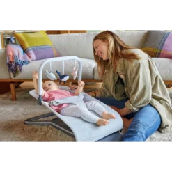 The Ergobaby Evolve Bouncer uses natural rocking technology—so no plugs, batteries, or switches needed. Plus, that means it’s lightweight and easy to move from room to room.