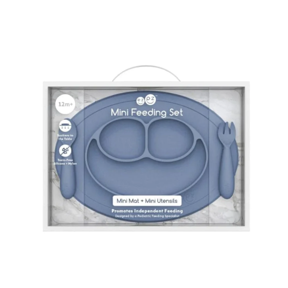 As your infant transitions to toddlerhood, they are ready to start practicing new mealtime milestones. They are eating a balanced meal with different food groups and are learning how to eat with a spoon (scooping) and fork (piercing). With the Mini Feeding Set (the Mini Mat, Mini Spoon and Mini Fork) ezpz provides all of the developmental tools you need for independent mealtime with your toddler