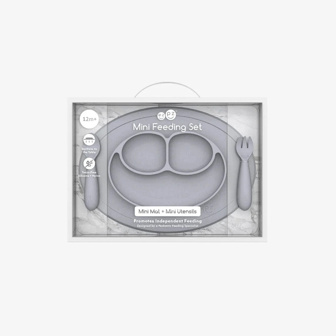 As your infant transitions to toddlerhood, they are ready to start practicing new mealtime milestones. They are eating a balanced meal with different food groups and are learning how to eat with a spoon (scooping) and fork (piercing). With the Mini Feeding Set (the Mini Mat, Mini Spoon and Mini Fork) ezpz provides all of the developmental tools you need for independent mealtime with your toddler