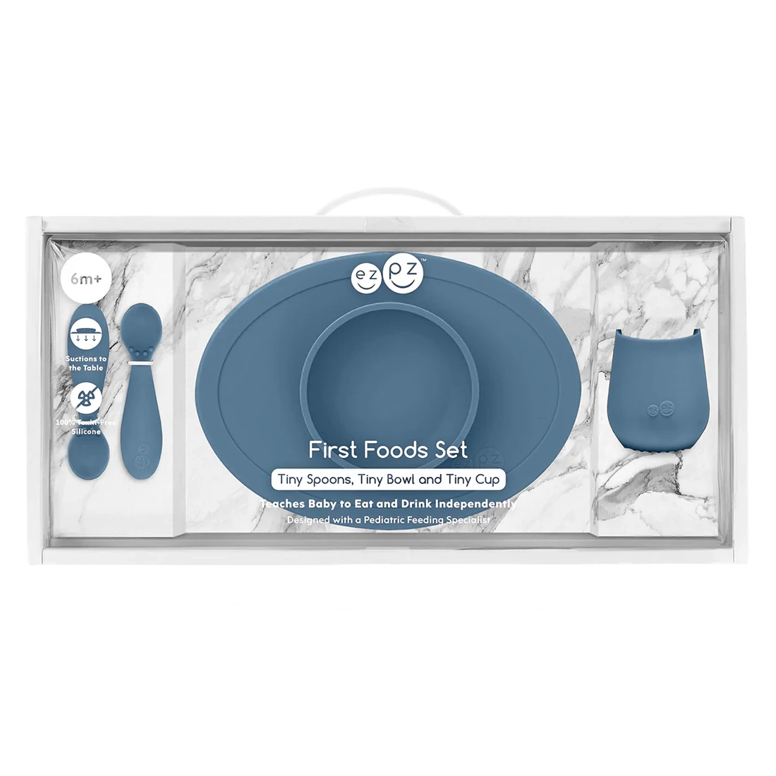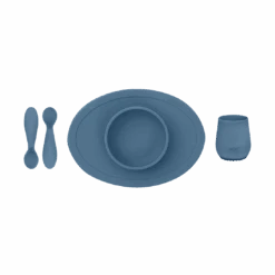 The EZPZ Tiny First Foods Set is designed to fit on the tiniest of highchair trays, including the Stokke Tripp Trapp and Boon Flair trays.
