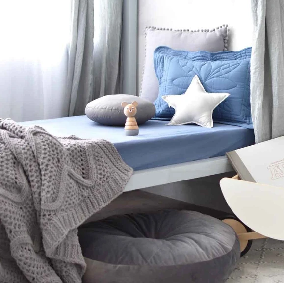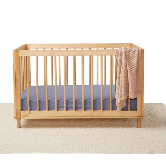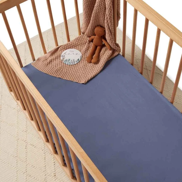 Our Snuggle Hunny Fitted Cot Sheet is made from snuggly soft organic stretch cotton jersey. It is stretchy so fits most cot mattress sizes and comes in a matching drawstring bag.