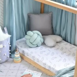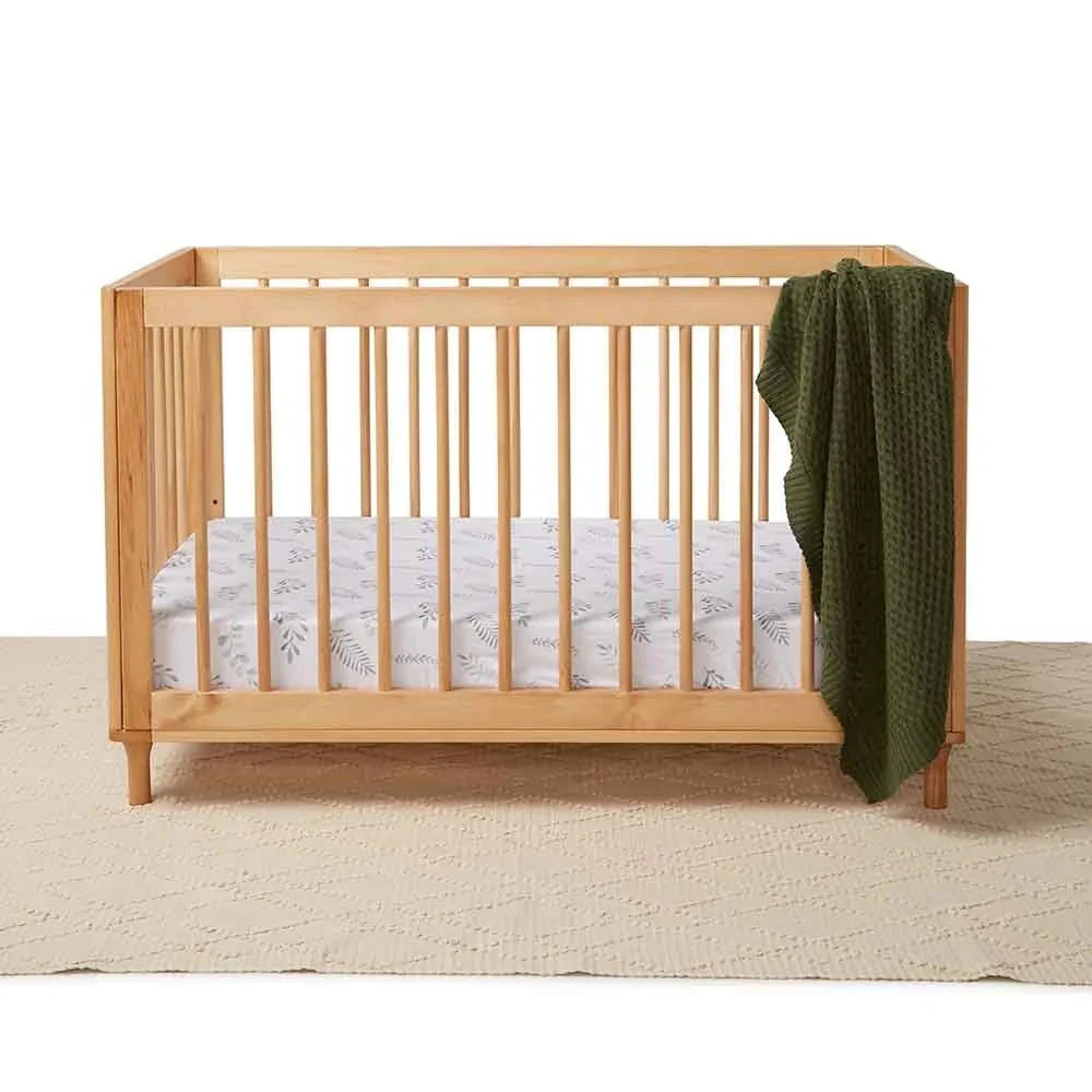 Our Snuggle Hunny Fitted Cot Sheet is made from snuggly soft organic stretch cotton jersey. It is stretchy so fits most cot mattress sizes and comes in a matching drawstring bag.