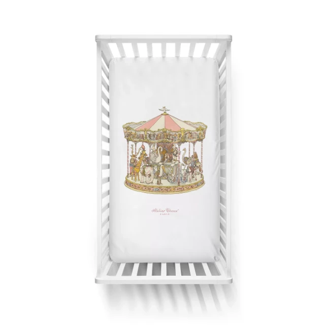 The matching Carousel swaddle, large Carousel Bib and small Carousel Bib are made and designed in France. It is super soft and made from organic cotton. This will make the perfect newborn baby gift together with Monceau Mansion gift box and shopping bag.