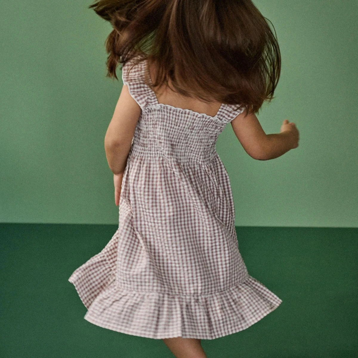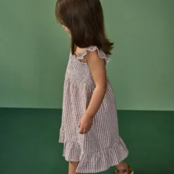 The Gala Dress is a stunning style made from 100% organic cotton woven seersucker. A versatile piece, it features gathered frill straps, a bodice with shirring elastic and a ruffle neckline.