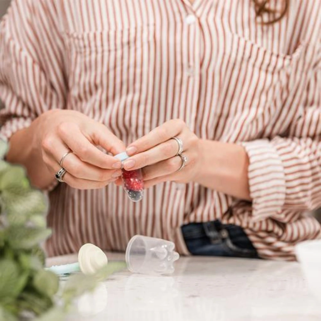 Purchase the Haakaa Silicone Nibble Tray separately. This makes the ideal portion sizes for Haakaa Fresh Food Feeder.