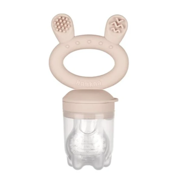 Made from 100% food grade silicone the haakaa fresh food feeder is more hygienic and long lasting than other mesh material alternatives, which harbour bacteria, use harsh dyes, absorb odour and tear. But what really makes this feeder different from the rest is that it is also a teether! Simply turn your feeder upside down and your child is able to chew and suck on a 100% food grade silicone teether – keeping your child entertained even longer.