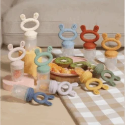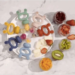Caution: Check product condition regularly. Replace if this product shows any signs of damage. Do not store near any sharp objects. Only soft bristle brushes or soft sponges should be used to clean this product. Hard scourers may scratch the surface. Do not use for anything other than its intended purpose. Adult supervision is required when using this product. Don’t place any foods in the feeder that your child could potentially develop an allergy to (such as strawberries or peanut butter) before they have reached 12 months of age. Always check with your pediatrician for guidelines related to infants and food allergies.