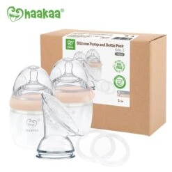 Start your feeding journey off right with the Haakaa Gen. 3 Pump and Bottle Pack! Express, feed and store milk easily and effectively with Haakaa’s world-first 5-in-1 feeding system. With a quick twist of the top, you can swap out your bottle attachment for any of our range of optional interchangeable attachments (each sold separately). We have our famous breast pump flange that lets you express directly into the bottle, a feeding spoon dispenser for when your baby moves on to solids, a sippy bottle top to help your independent toddler transition from a bottle to a cup and a sealing disk to preserve any leftover food or milk after feeding. This pack contains: