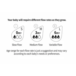 The 90ml and 120ml options contain a slow flow teat for newborns onwards. The 160ml and 180ml size contains a variable flow teat suitable for 6 months+