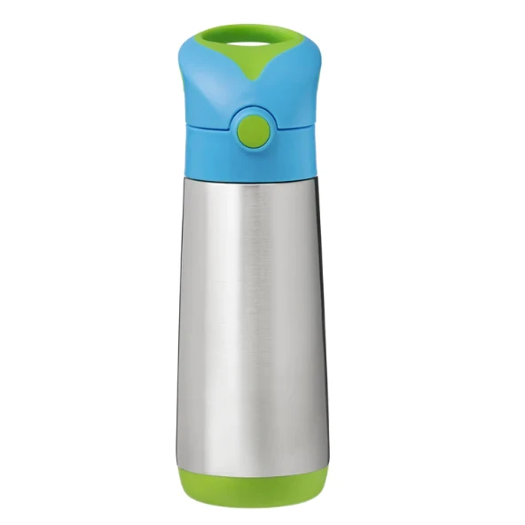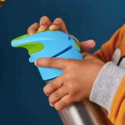 The front press summary opening can be used with one hand to help with those big schoolyard thirsts and the integrated carry handle means it’s always on hand.