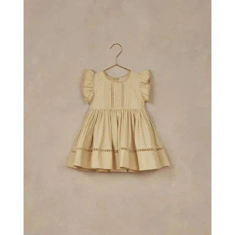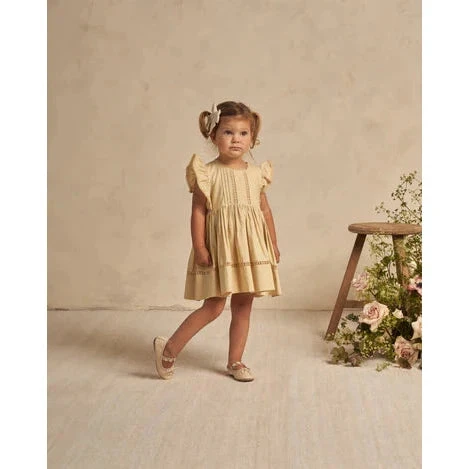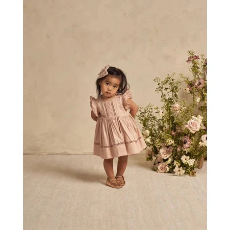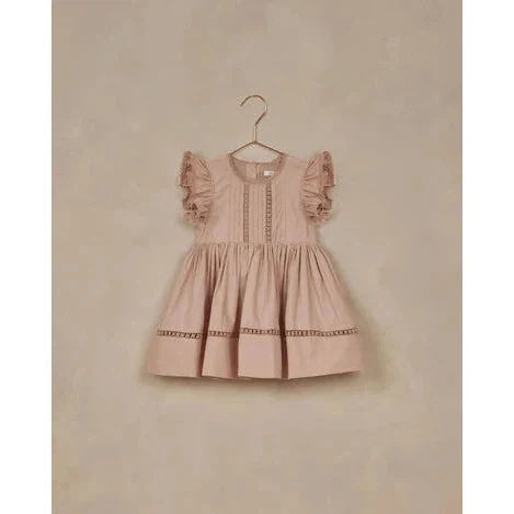 This delicate dress has a sweet silhouette and features lovely lace and pintuck details.
