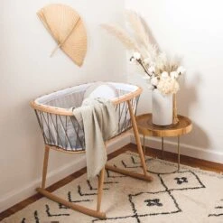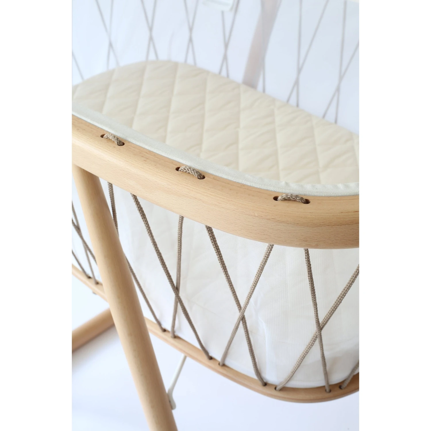 The design of the KUMI merges tradition and modernity. It retains the age-old lateral swing, a delicate movement that helps babies fall asleep, while sketching minimalist and contemporary lines, thanks in particular to the laces that surround it, giving it both lightness and security.