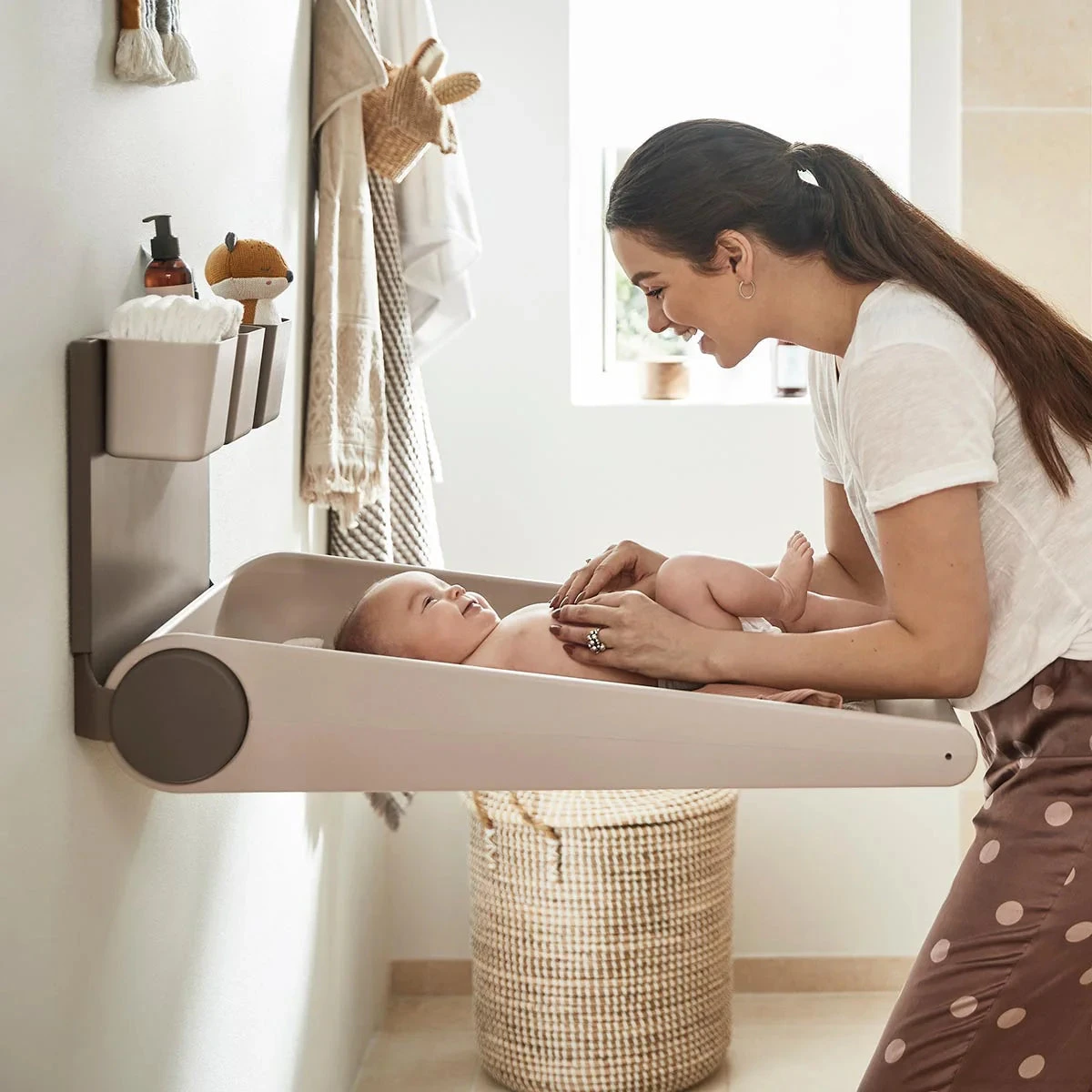 Create a cosy changing station for you and your child. Leander Wally™ the wall-mounted changing table is a contemporary, space-saving design that makes life with a baby a little easier.