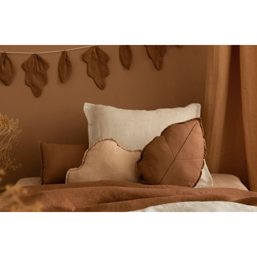 The leaf cushion from the Nobodinoz collection is made of linen collected from 100% French harvests. Thanks to a perfect knowledge of fabric finishing, Nobodinoz has achieved to transform linen into a soft and refined fabric. The leaf cushion establishes your child’s first connection with nature. It is as elegant in your child’s room as in your living room. Our flax is cultivated in France, the weaving and finishing are done in Barcelona. This short-local production chain guarantees quality and minimizes the carbon footprint: the French Nobodinoz linen doesn’t fly or sail.