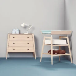 This stunning Linea change table by Leander is designed for urban living and will fit into the smallest of rooms. The design is inspired by the hour glass and has an almost sculptural appearance.