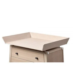 Convert your dresser into a change station by adding this smart change tray. It is easily connected to the dresser and you can either align it with the dresser or position it further forward to reduce the wasted space behind. The tray has high sides to protect your baby – however never leave your child unattended – and is a perfect match to the leander matty change mat.