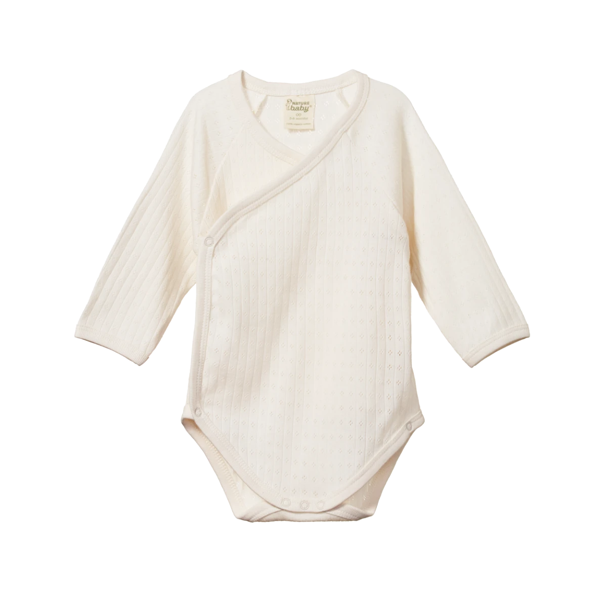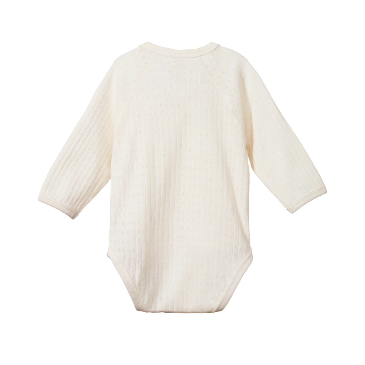 A great option for newborns to avoid having to pull garments over baby’s head. Long raglan sleeves and a wrap-around style with a double layer at the front to keep baby’s chest warm. Easy to fasten with domes on the inside and outside, as well as the crotch and outside leg. Made in our beautiful Pointelle fabric that’s super soft and stretchy, featuring a delicate nostalgic knit pattern. To minimise shrinkage, this fabric has been pre-washed.