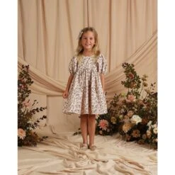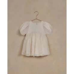 This adorable dress features pretty puff sleeves and a babydoll inspired silhouette with a curved waistline. Scooped neck and summary back closure.