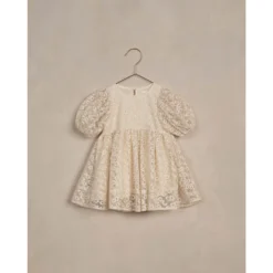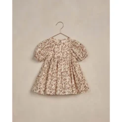 This adorable dress features pretty puff sleeves and a babydoll inspired silhouette with a curved waistline. Scooped neck and summary back closure.