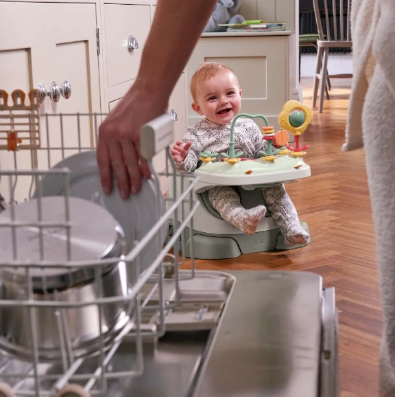Once your little one has mastered supporting their own head, our Bug 3-in-1 seat gives them a safe place to sit and play, so you can keep your hands free for other things. Packed with removable and adjustable features, it even has a play tray with colourful sensory toys that’ll keep their little hands busy. The super-stable base means you can place it safely on the floor whilst they play, and it can be easily used as a booster seat for weaning. And once they’re old enough to join you at the table, Bug can be strapped to a dining chair. So, you won’t need to upgrade when it’s time to embrace those fun-filled family meals with your toddler.