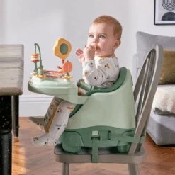 - Can be strapped to a dining chair for family mealtimes