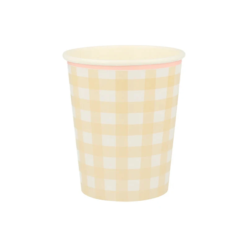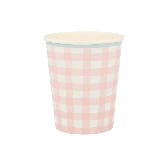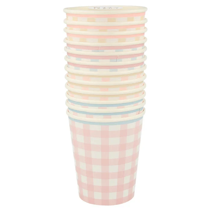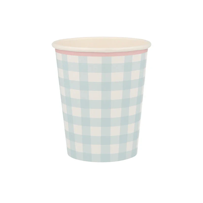 Gingham is a gorgeous print for springtime. It looks wonderful on these cups, which are perfect for serving refreshing drinks in for parties or picnics.