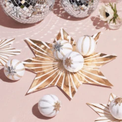 These special star plates will look amazing on your festive party table (and look splendid as decorations too!). They are cleverly crafted with two designs that mirror each other – one white with gold foil, and the other gold foil with white.
