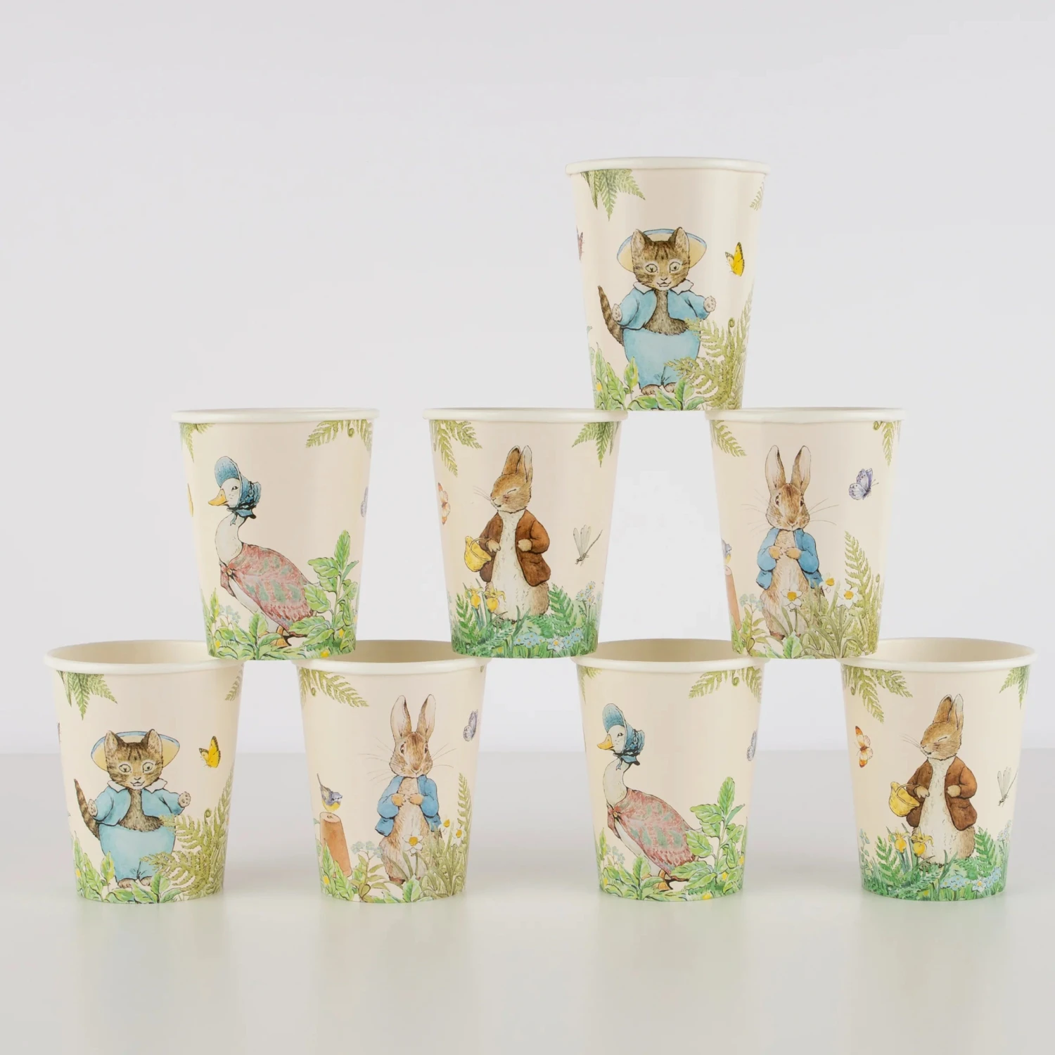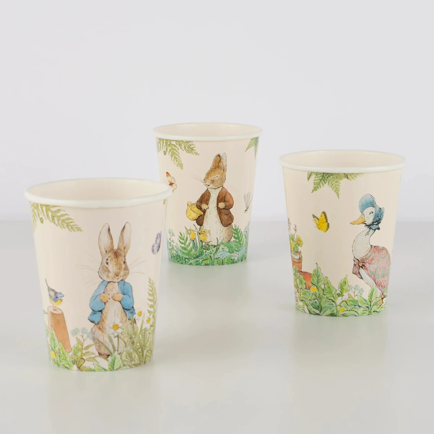 - The cups have designs of Peter Rabbit, Benjamin Bunny, Tom Kitten and Jemima Puddleduck