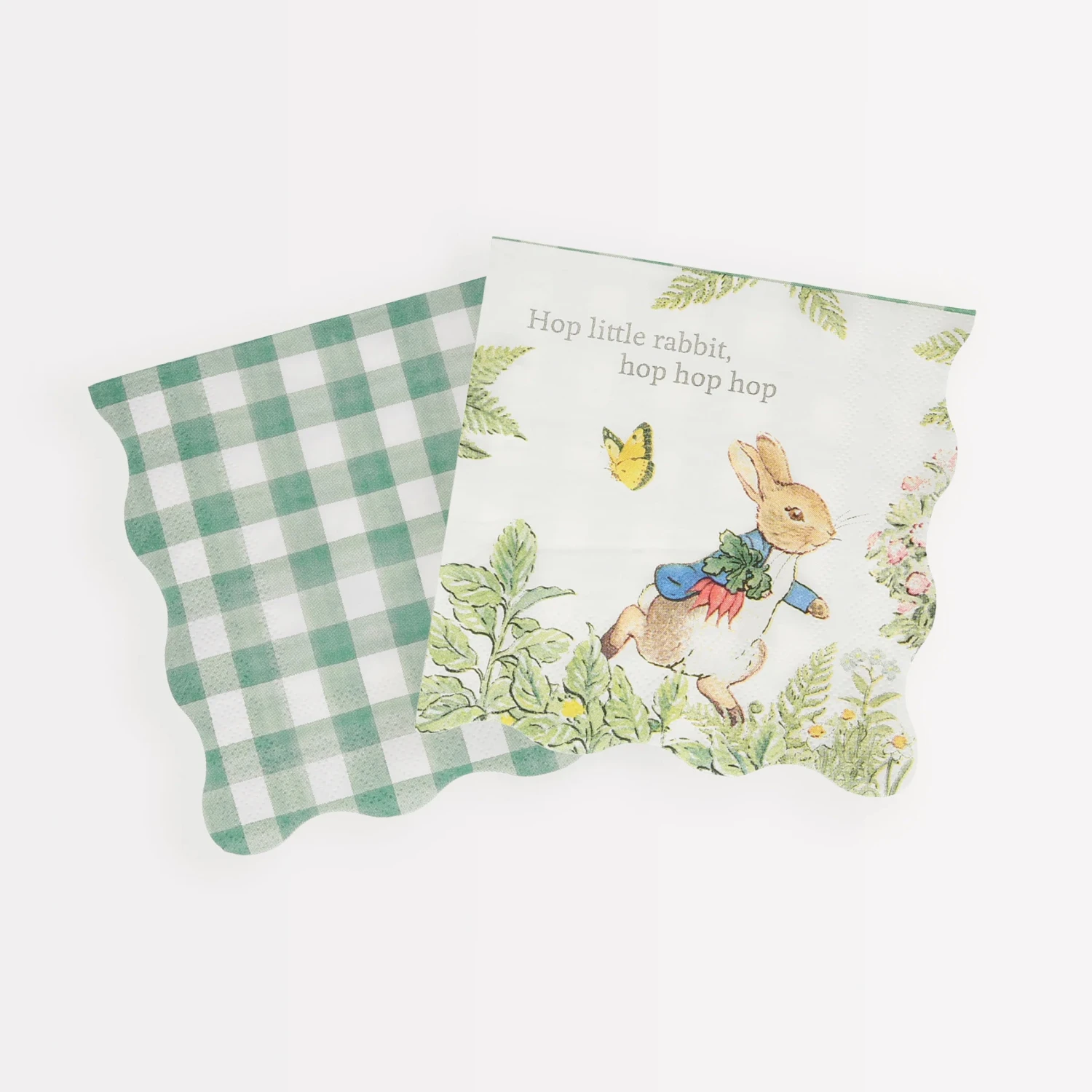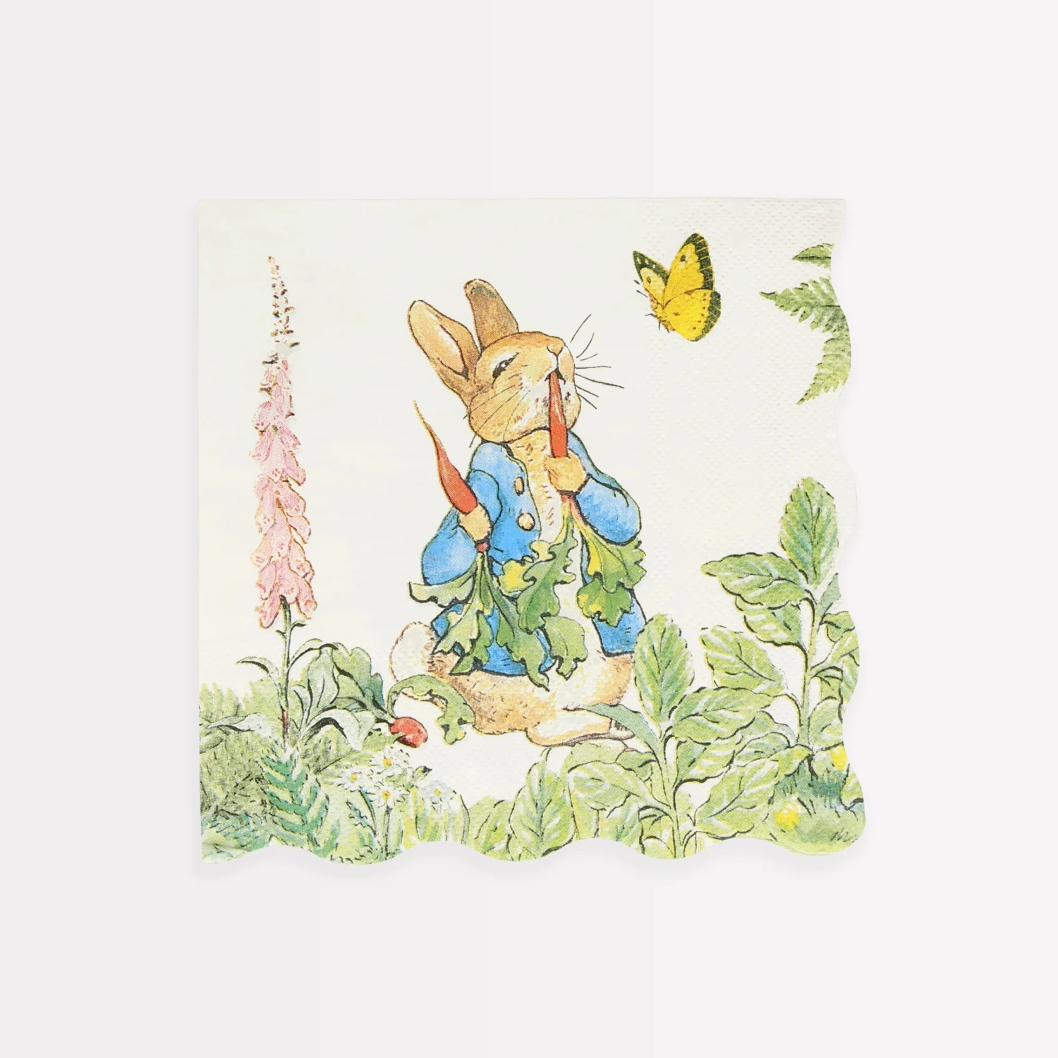 This iconic vintage design of the delightful Peter Rabbit munching on radishes will delight your party guests. The scalloped border on these large napkins adds a stylish finishing touch.