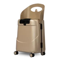 Designed for multi-function travel, the MiaMily luggage bag universally configures into a ride on suitcase for children or a portable seat for adults, allowing your child to quickly and conveniently travel with you atop the travel suitcase or providing a resting place for adults when standing for long periods of time. When traveling without a child, the seat on this spinner suitcase can be used to safely store a diaper bag, travel bag or a briefcase.